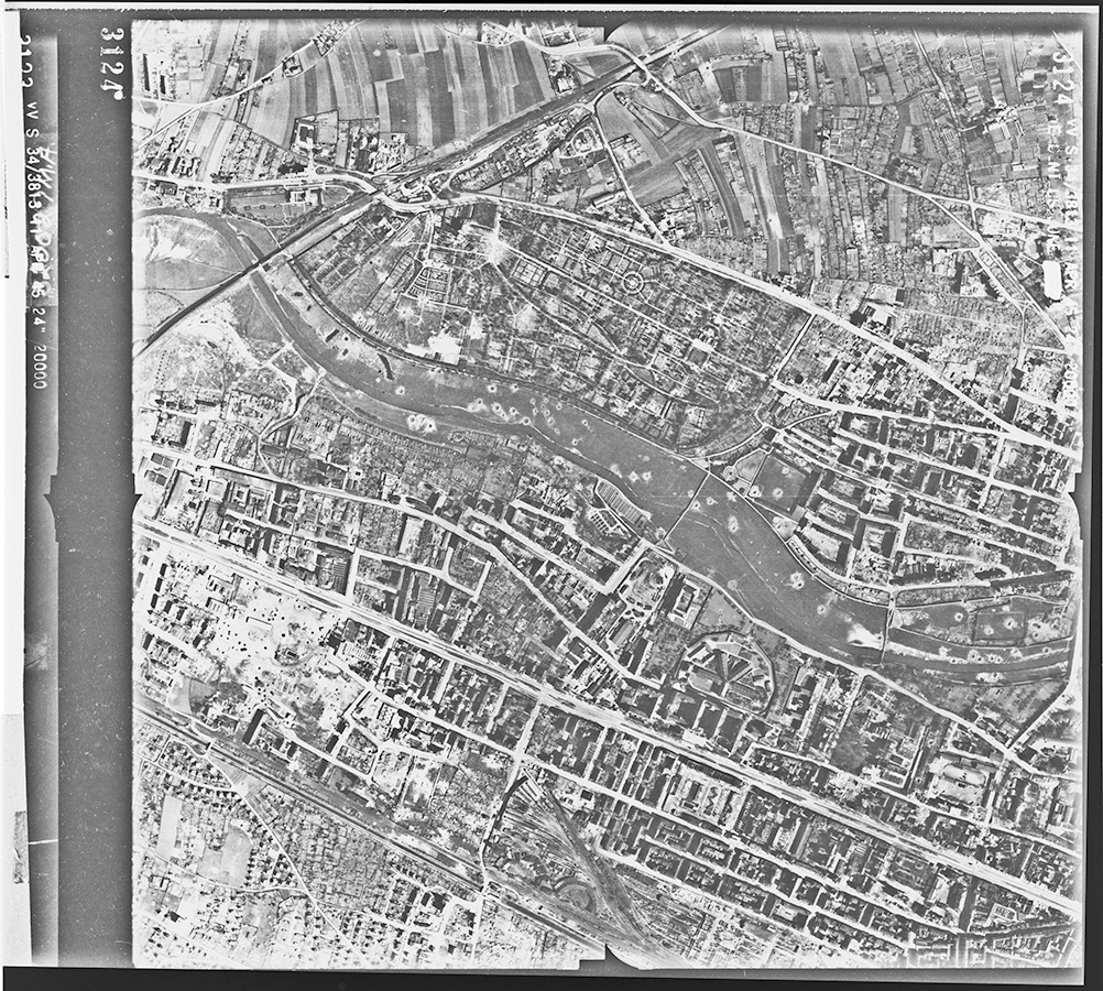 Die Ausstellung erinnert an die Zerstörung Nürnbergs - anhand von 3D-Luftbildern (Anaglyphenbilder) und historischen Aufnahmen.